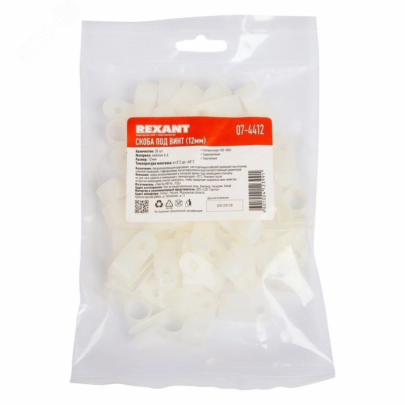Скоба кабельная под винт 12 мм, белая (50 шт/уп)