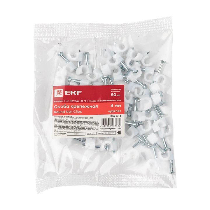 Скоба крепежная круглая 4мм (уп.50шт) EKF plcn-sr-4