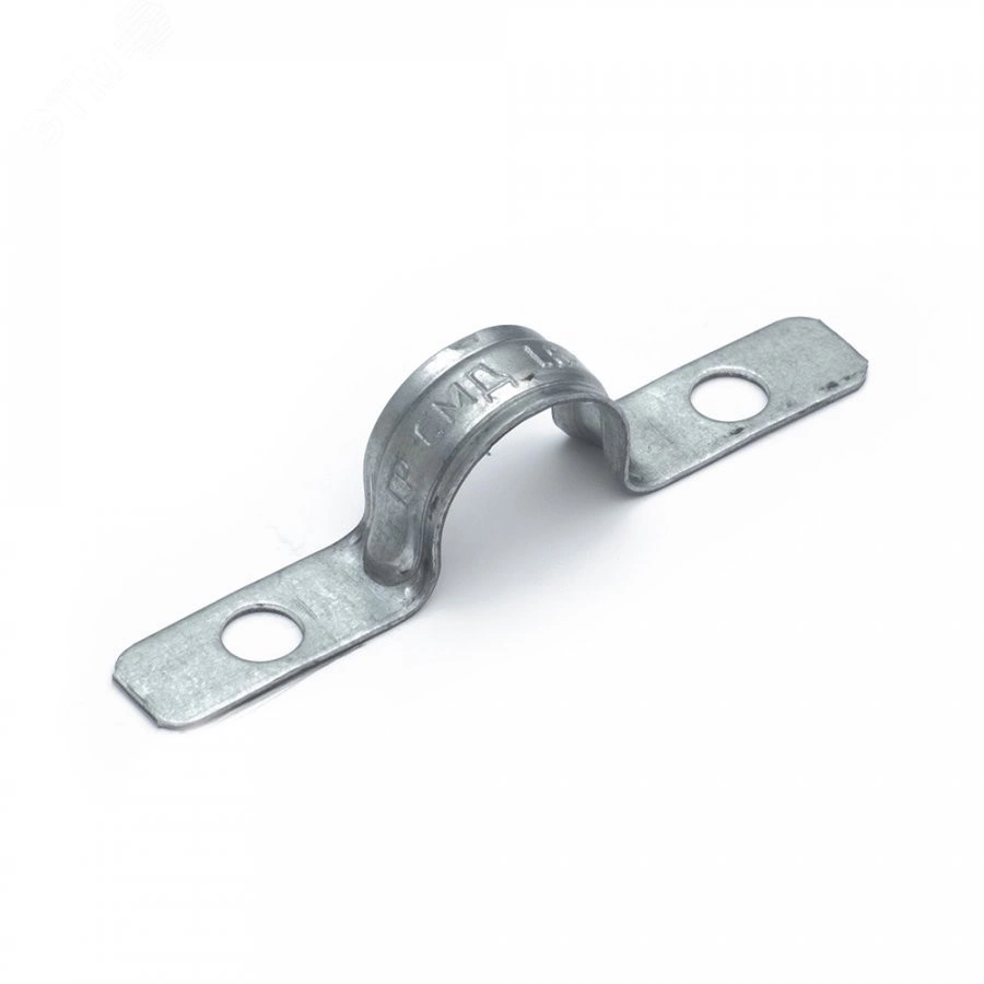 Скоба металлическая двухлапковая усиленная противопожарная СМДУ d16-17 мм отв. d 6,5 мм (100 шт/уп)