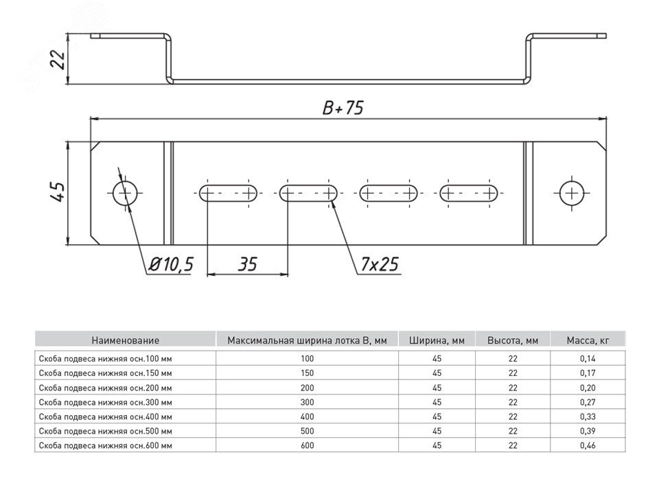 Скоба подвеса нижняя 500мм (2мм) HDZ