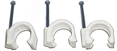 Для крепления кабеля, круглые, с гвоздем. Материал - пластик. Упаковка - п/э пакет с картонным подвесом.