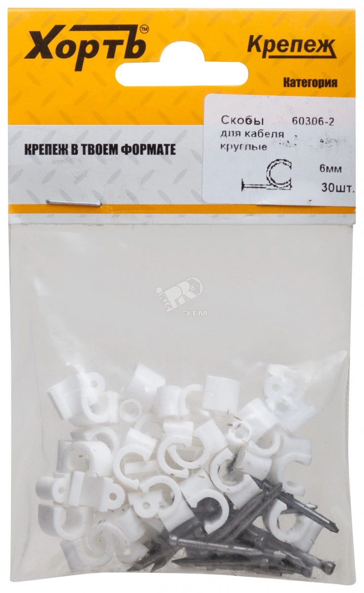 Скобы для кабеля круглые 6 мм (фасовка 30 шт.)