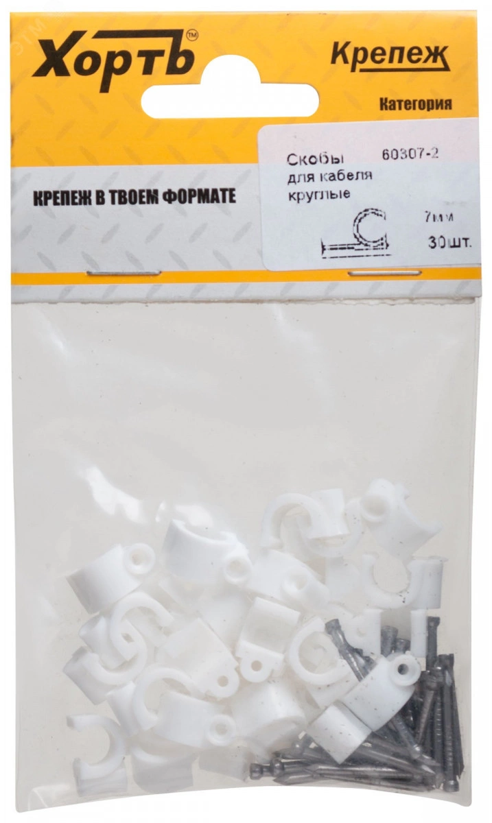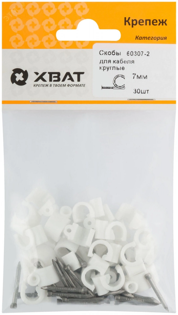 Скобы для кабеля круглые 7 мм (фасовка 30 шт.)