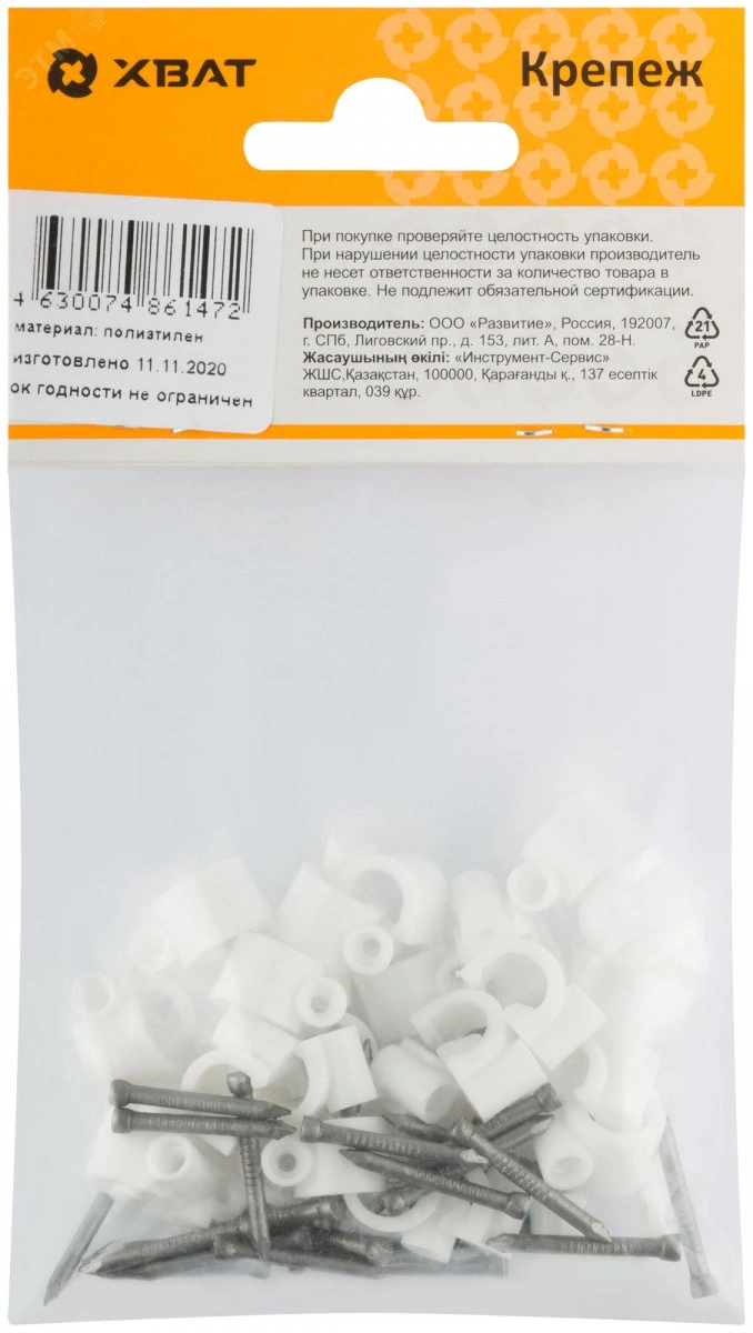 Полное описание: Скобы для кабеля круглые 7 мм (фасовка 30 шт.)