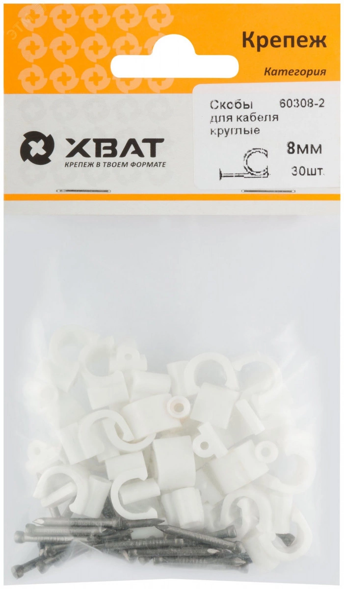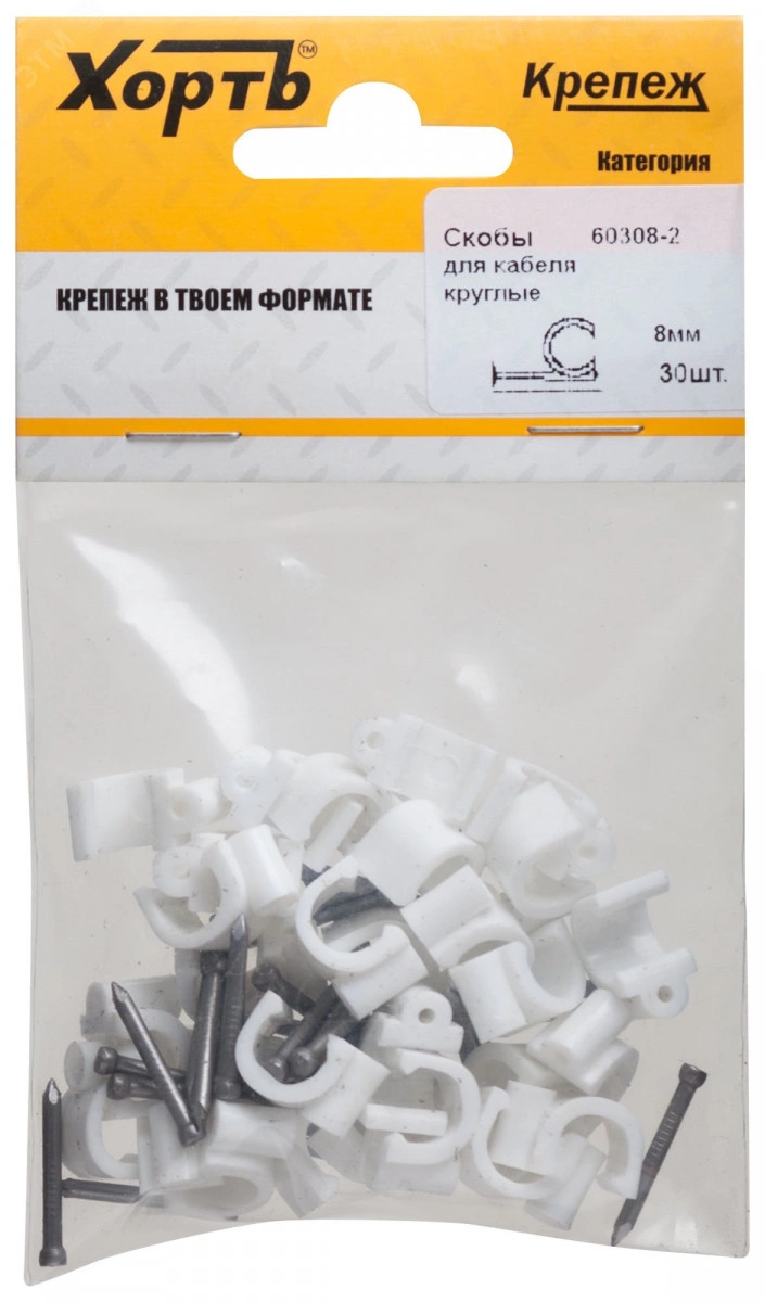 Скобы для кабеля круглые 8 мм (фасовка 30 шт.)