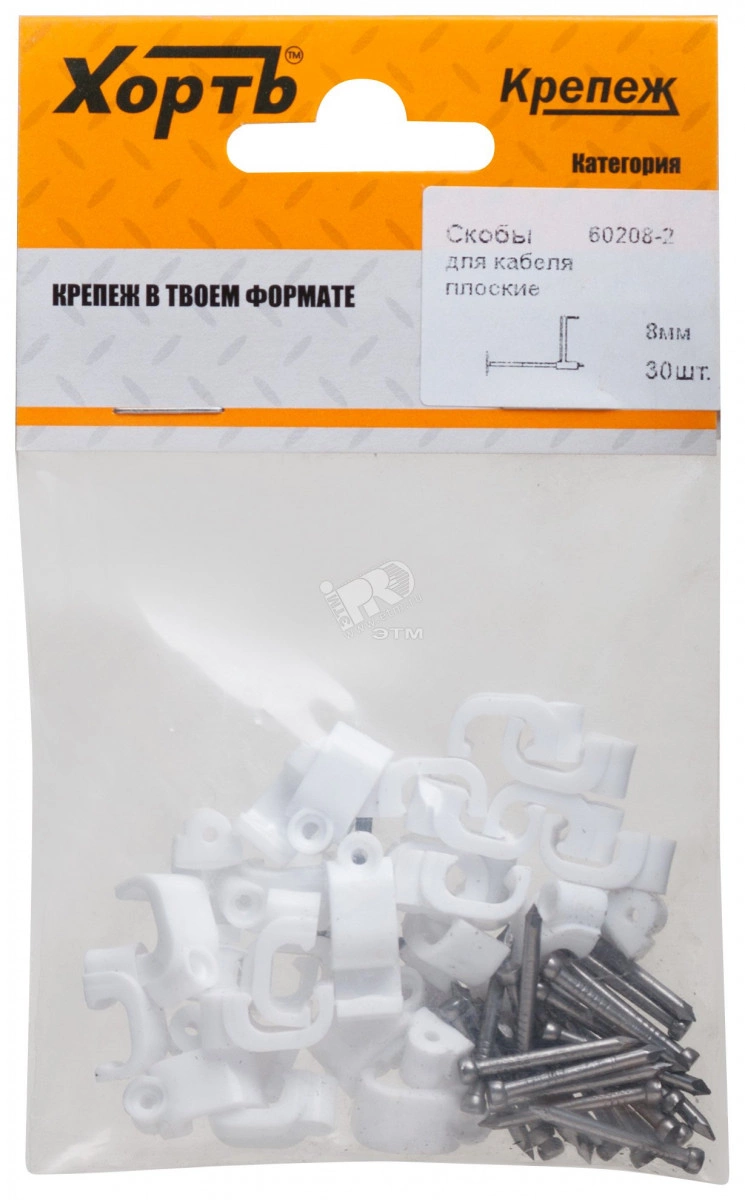 Скобы для кабеля плоские 8 мм (фасовка 30 шт.)
