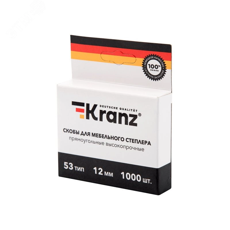 Прямоугольные скобы для мебельного степлера KRANZ используются для соединения изделий из дерева, фанеры, картона, ДСП, оргалита и т.д. Применяются для обшивки мебели тканями. Представляют собой сменный элемент для степлеров. Тип- 53, материал- сталь, ширина- 11.3 мм, высота- 12 мм, толщина- 0,7 мм. Фасуются по 1000 шт.