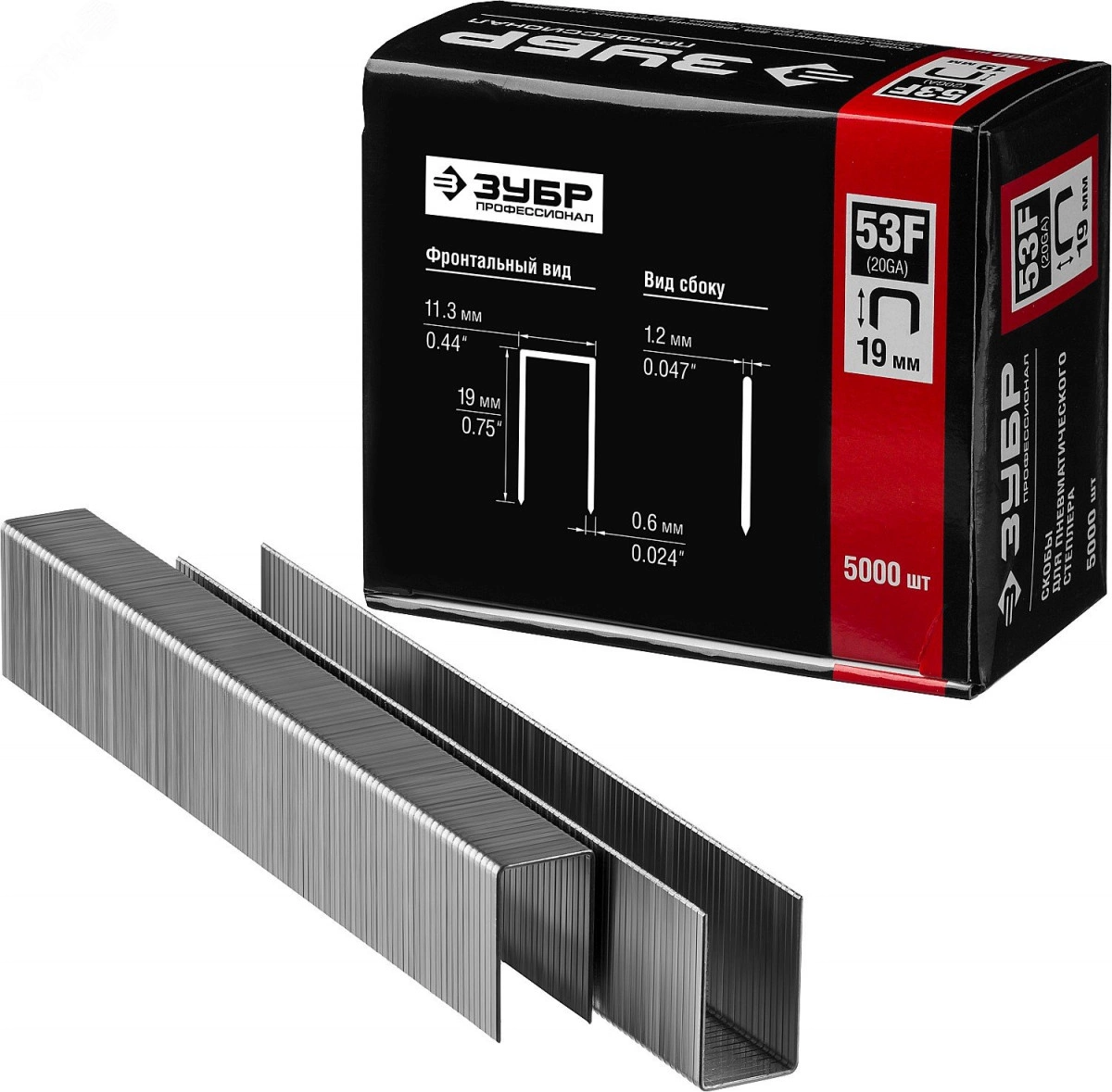 Скобы для степлера 19 мм плоские тип 53F, 5000 шт