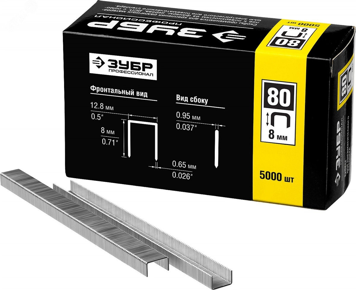 Скобы для степлера 8 мм тонкие широкие тип 80, 5000 шт