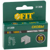 Узкие скобы для степлера (тип 53) FIT IT предназначены для крепления легких листовых материалов (ткань, холсты, картон, изоляционные материалы, тонкий металл). Закалка стали расширяет круг применения скоб. Цинковое покрытие защищает скобы от коррозии. В упаковке содержится 1000 штук скоб, что позволяет использовать их при выполнении большого объема работ.