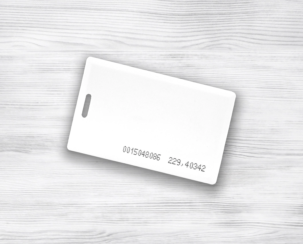 Бесконтактная карта TANTOS EM-Marine (толстая) TS. Предназначена для идентификации пользователя в системе контроля доступа по коду, содержащемуся в конкретной карте. Выполнена в корпусе типа Clamshell с прорезью, габаритные размеры - 86x54x1,6 мм. Идентификационный номер нанесен на поверхность карты.