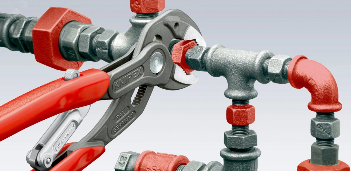 85 01 250 KNIPEX SmartGrip оптимальный вариант при необходимости частой перенастройки ключа на разные размеры деталей. автоматическая регулировка для работы одной рукой как правой, так и левой. удобный доступ к детали благодаря тонкой конструкции головки и шарнира, а также пригнанному заподлицо болту шарнира. функция смыкания губок, которая облегчает работу в узких и труднодоступных местах. захватные губки со специально закаленными зубцами твердостью примерно 61 HRC - надежный захват - надолго!. коробчатый шарнир - высокая стабильность благодаря двум направляющим. Защита от защемления пальцев. рычаг замкового устройства позволяет компактную транспортировку с закрытыми ручками. - Параметры для труб (диаметр) - 1 /4 - Параметры для труб (диаметр) - 32mm - Диапазон для гаек, размер под ключ - 36mm