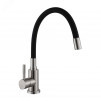 Смеситель для кухни серия Lomond GOLDEN FOX. Корпуснержавеющая сталь (SUS304). Цветсатин + черный. Картридж-Wanhai, 35 мм, с керамическими пластинами. Излив-высокий, гибкий, силиконовый, поворотный (360 градусов). Аэратор-пластиковый, съемный, внутр. резьба 22 мм. Крепление-система быстрого монтажа FAST FIX. В комплекте-гибкая подводка дюйма 500 мм – 2 шт. Упаковка-картонная коробка, индивидуальный пакет.
