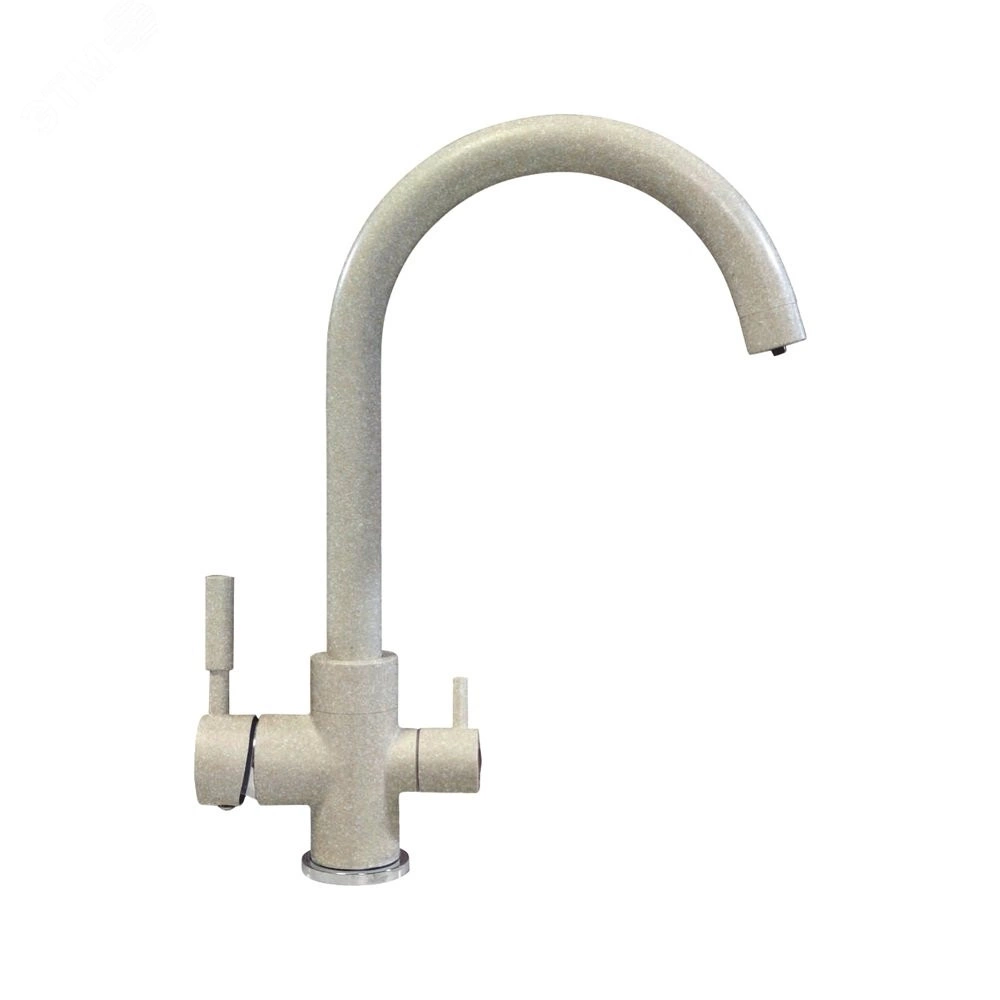 Смеситель для кухни с дополнительным выходом на питьевую воду серия Kitchen pro GOLDEN FOX. Материал изготовления-нержавеющая сталь (SUS 304). Покрытие-полимерно-порошковое. Цвет-бежевый. Картридж-Wanhai, 35 мм, с керамическими пластинами. Кран-букса-1/2 дюйма 20 шлиц, латунная с керамическими пластинами. Излив-высокий, поворотный, высота – 388 мм. Аэратор- пластиковый, съемный, внутр. резьба 22 мм. Крепление-система быстрого монтажа FAST FIX. В комплекте-гибкая подводка 1/2 дюйма (500 мм) - 3шт.