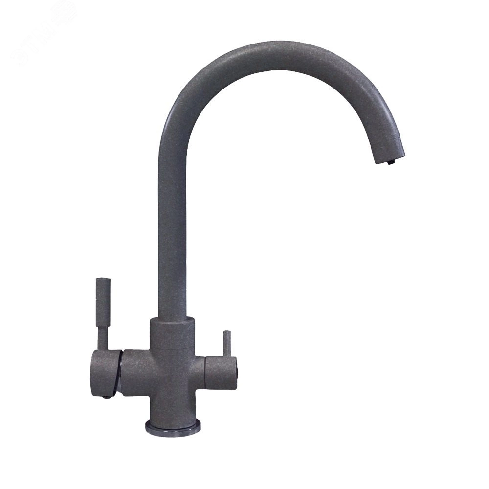 Смеситель для кухни с дополнительным выходом на питьевую воду серия Kitchen pro GOLDEN FOX. Материал изготовления нержавеющая сталь (SUS 304). Покрытие полимерно-порошковое. Цвет-серый. Картридж-Wanhai, 35 мм, с керамическими пластинами. Кран-букса - 1/2 дюйма 20 шлиц, латунная с керамическими пластинами. Излив-высокий, поворотный, высота – 388 мм. Аэратор-пластиковый, съемный, внутр. резьба 22 мм. Крепление-система быстрого монтажа FAST FIX. В комплекте-гибкая подводка 1/2 дюйма (500 мм) - 3шт.