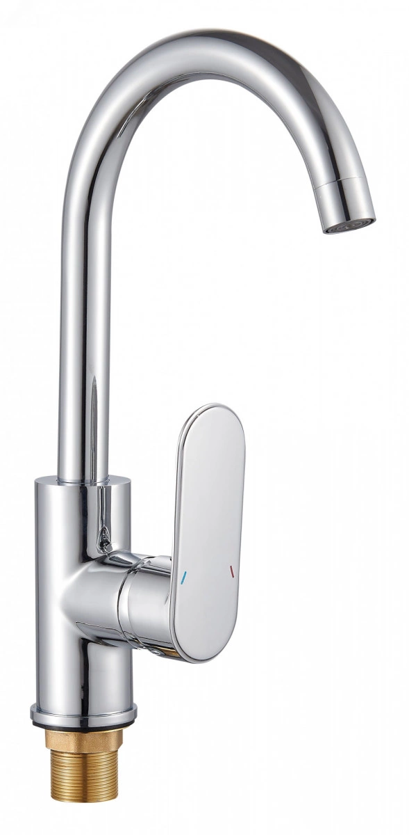 Смеситель для кухни с коротким изливом шаровый, латунь, хром