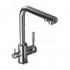 Корпус смесителя и картридж (переключатель для фильтрованной воды) изготовлены из латуни, что гарантирует прочность и устойчивость к коррозии.Смеситель 2 в 1 позволяет не сверлить в мойке или столешнице дополнительные отверстия для отдельного крана питьевой воды: встроенный в конструкцию аэратор разделяет поток воды на водопроводную и питьевую. Удобен в использовании — высокий излив и угол поворота крана 360 градусов позволяют наполнять водой большие емкости. Гибкая подводка в оплетке из нержавеющей стали обеспечивает простоту установки. Шланги компактно располагаются под мойкой, их несложно подсоединять к конструкции — монтаж не требует пайки. Все необходимое для подключения идет в комплекте. Благодаря современному лаконичному дизайну смеситель хорошо смотрится в любом кухонном интерьере. Подходит для всех стационарных систем АКВАФОР.