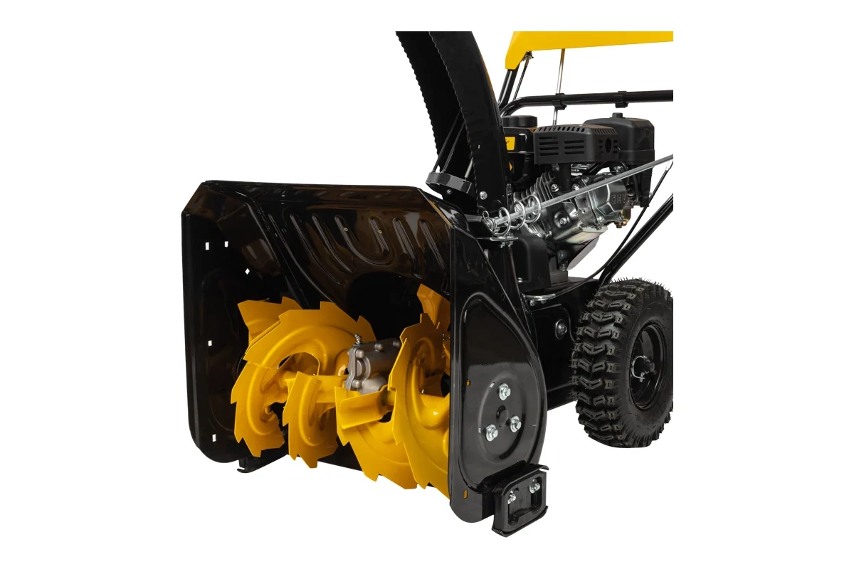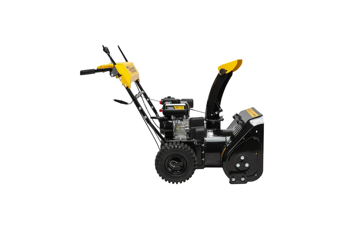 Снегоуборщик предназначен для уборки снега с дорог, тротуаров и проездов. Благодаря мощным шнекам-ледорубам справляется с любым типом снега, включая слежавшийся и обледенелый. Оснащен 4-х тактным двигателем мощностью 7 л.с., обеспечивающим высокую производительность и эффективность работы. Шины с глубоким протектором облегчают перемещение по снегу и скользким поверхностям. Ковш шириной 61 см и высотой 54 см захватывает большой объем снега и откидывает на расстояние до 12 м. Возможность поворота желоба на 190 градусов позволяет легко и точно направлять выбрасываемый снег в необходимую сторону. Быстрый выброс и увеличение дальности снега достигаются с помощью эффективной двухступенчатой системы. Снегоуборщик имеет 6 скоростей вперед и 2 скорости назад. Для максимального комфорта пользователя руль может быть отрегулирован по высоте.