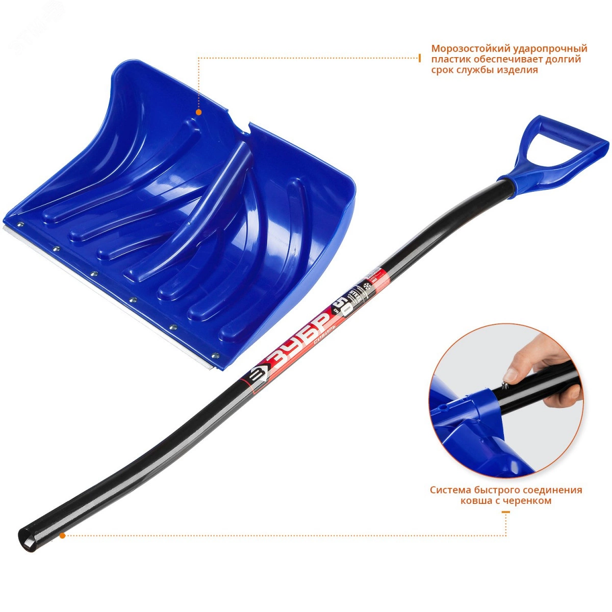 Полное описание: Снеговая лопата СИБИРЬ 500 мм пластиковая со стальной планкой эргономичный алюминиевый черенок V-ручка