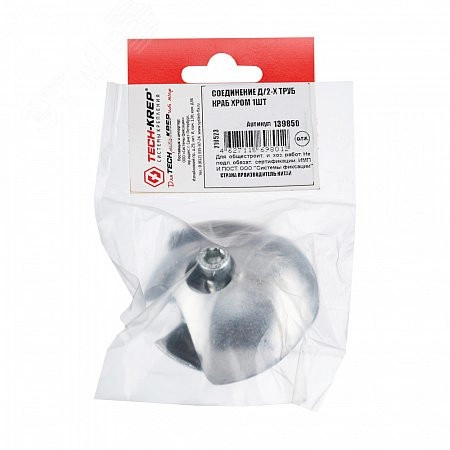 Соединитель 2-х труб краб хром (1 шт) - пакет Tech-Krep