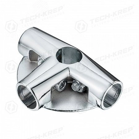 Применяется для соединения стойки и трех труб в Джокер-Системах. Две угловые площадки позволяют закрепить на конструкции полки из дерева или стекла.
