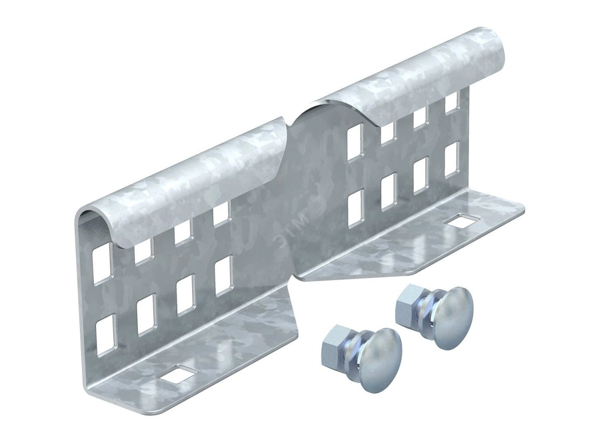 Угловые соединители в качестве внешних соединителей для крепления кабельных лотков лестничного типа и фасонных деталей с высотой боковой стенки 60 мм и сквозной перфорацией стенки.