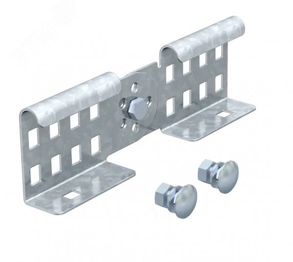 Шарнирный соединитель выступает в качестве внешнего крепления для фиксации кабельных лотков лестничного типа и фасонных деталей с высотой боковой стенки 60 мм и сквозной перфорацией стенки. Уголки регулируются по вертикали.