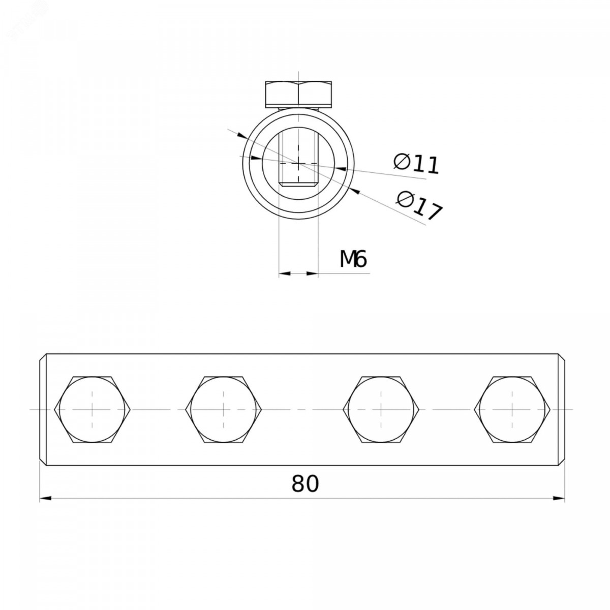 Прямой держатель болтовой для прутка D 5-10 мм H80 мм CU