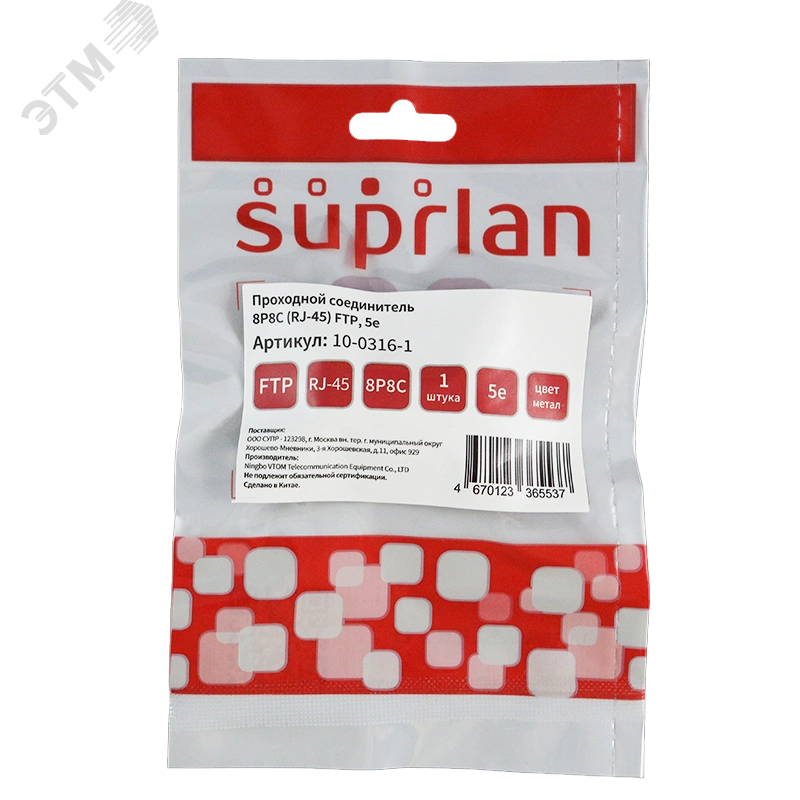 Проходной соединитель 8Р8С (RJ-45) FTP категории 5e SUPRLAN позволяет соединять 2 экранированных (FTP) лан-кабеля, оконцованных коннекторами RJ-45 8Р8С. Необходимо использовать экранированные коннекторы, чтобы не нарушать целостность линии.