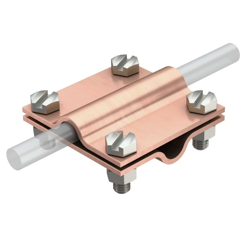 для соединения круглых проводников Rd 8-10 x Rd 8-10, с 4 шестигранными болтами M 6 x 16 из нержавеющей стали (VA).