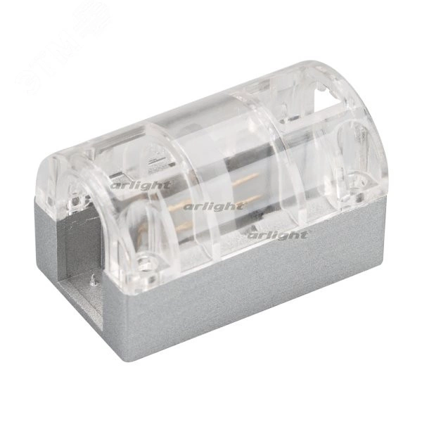 Прямой 2-х контактный соединитель для гибкого неона ARL-CF2835 26x15mm. Обеспечивает непрерывное соединение и сплошную линию свечения без разрывов. Требуется доп.герметизация для соединения IP65. Материал-алюминий, прозрачный пластик. Размеры ДхШ - 50х30мм.