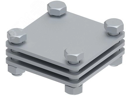 Соединитель с промежуточной пластиной для параллельного и перпендикулярного соединения полосы до 40 мм. Материал - горячеоцинкованная сталь.