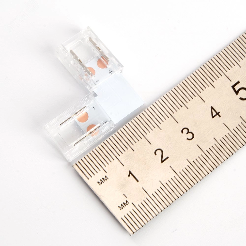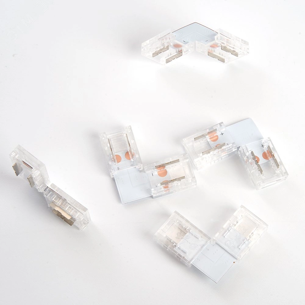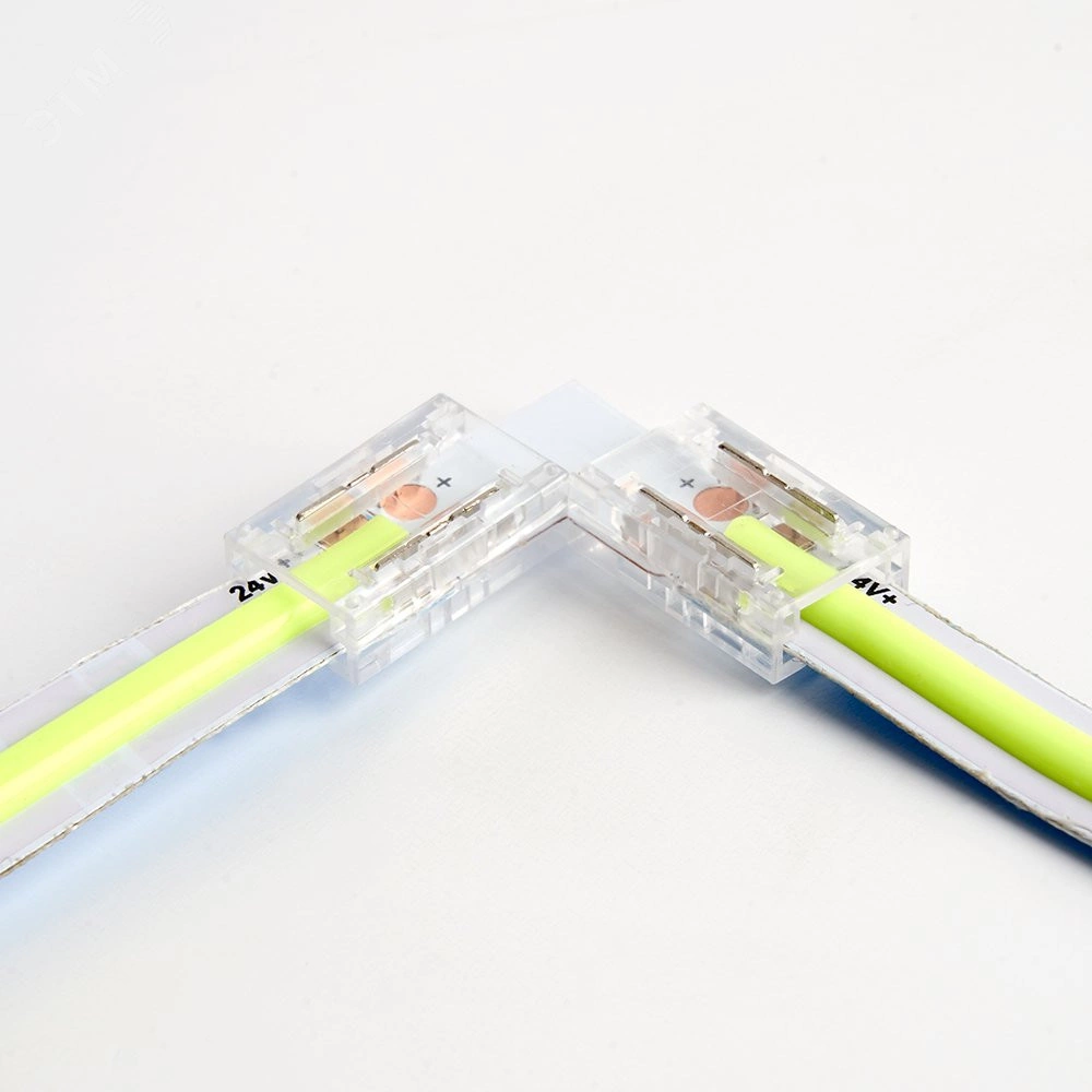 Соединитель угловой для COB ленты шириной 10 мм. Позволяет соединять сегменты ленты быстро и без пайки. Применяется при соединении ленты под углом для формирования непрерывной световой линии сложной формы.