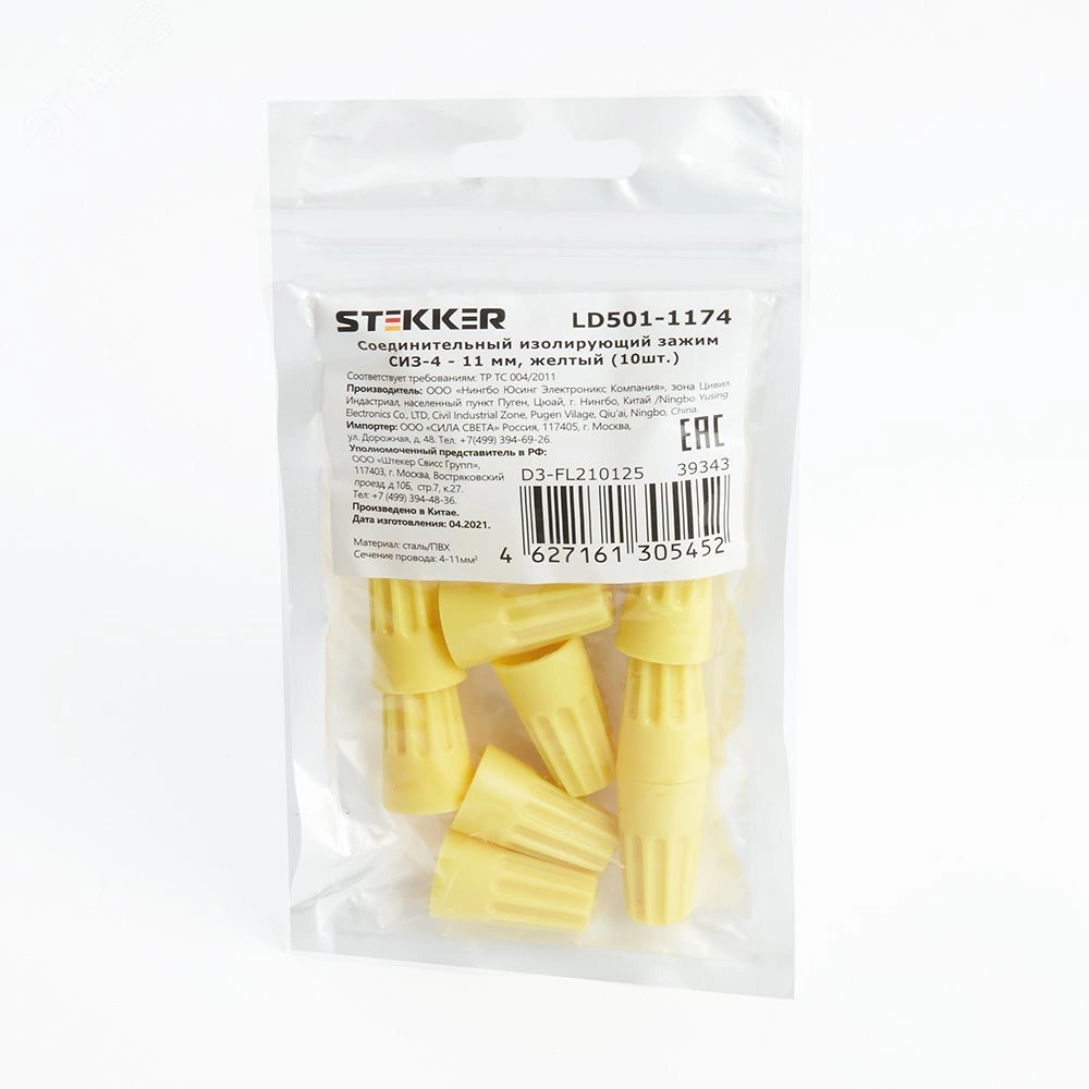 Соединительный изолирующий зажим СИЗ-4 для проводов сечением до 11 мм2, желтый (DIY упаковка 10 шт), LD501-1174. Используются для соединения и изоляции пучка проводов. Скрутки СИЗ при монтаже не требуют использования специального инструмента, соединение происходит при накручивании колпачка СИЗ на предварительно зачищенные и соединенные вместе концы проводов. Монтаж скрутками СИЗ предполагает соединение только медных проводов. Соединение медных и алюминиевых проводов в одной скрутке СИЗ запрещено