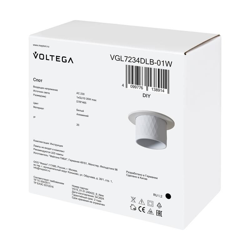 Полное описание: Спот 234 GU10х1 10Вт IP20 Voltega VGL7234DLB-01W