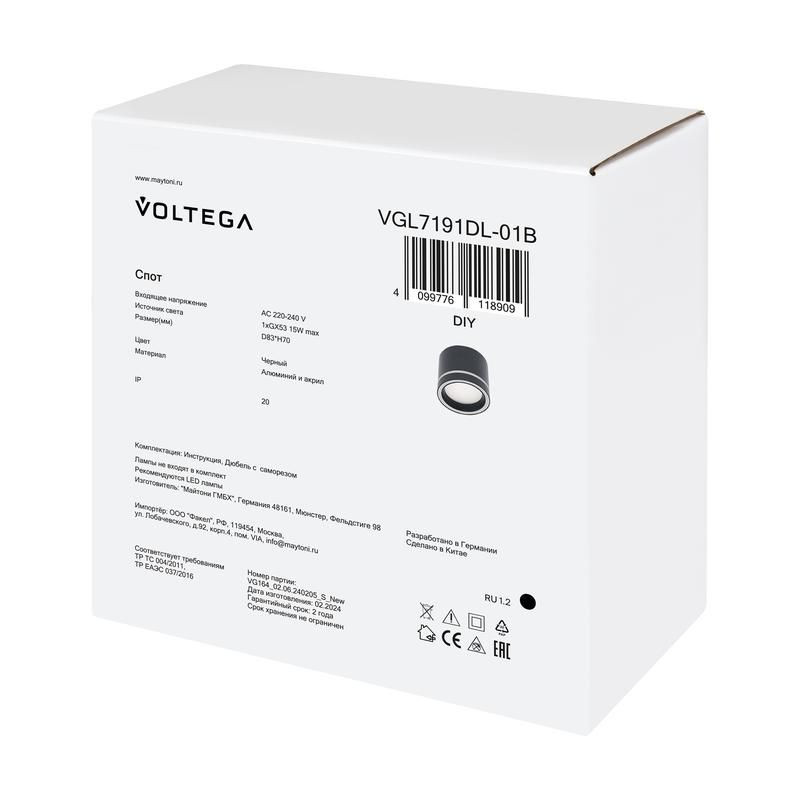 Полное описание: Спот Flip GX53х1 15Вт IP20 Voltega VGL7191DL-01B