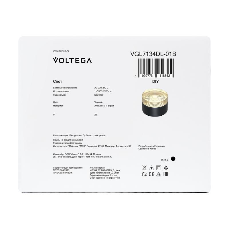 Полное описание: Спот Zoro GX53х1 15Вт IP20 Voltega VGL7134DL-01B