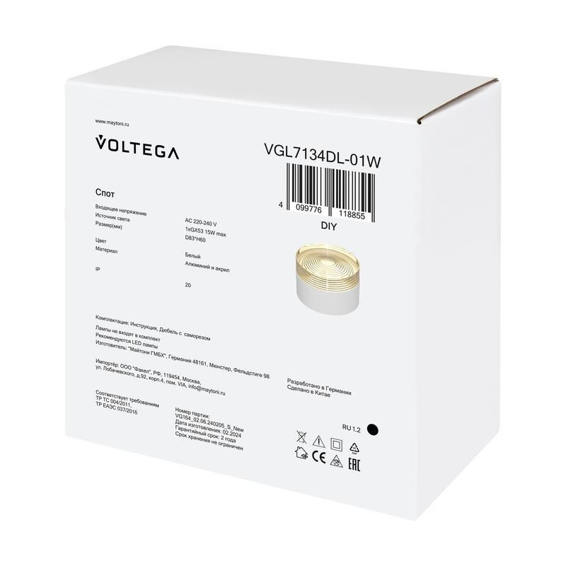 Полное описание: Спот Zoro GX53х1 15Вт IP20 Voltega VGL7134DL-01W
