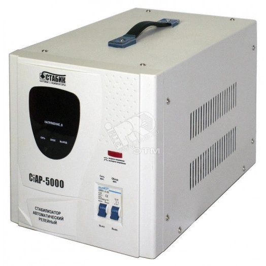 Стабилизатор напряжения RUCELF СтАР-5000VA однофазный, предохраняет холодильники, телевизоры и другую различную бытовую технику от поломки в связи с перепадами напряжения в сети. Отверстия в корпусе способствуют естественной вентиляции и отводу теплого воздуха. Корпус защищает все внутренние узлы изделия от механических повреждений. В приборе предусмотрены входная/выходная фильтрация частотных помех.