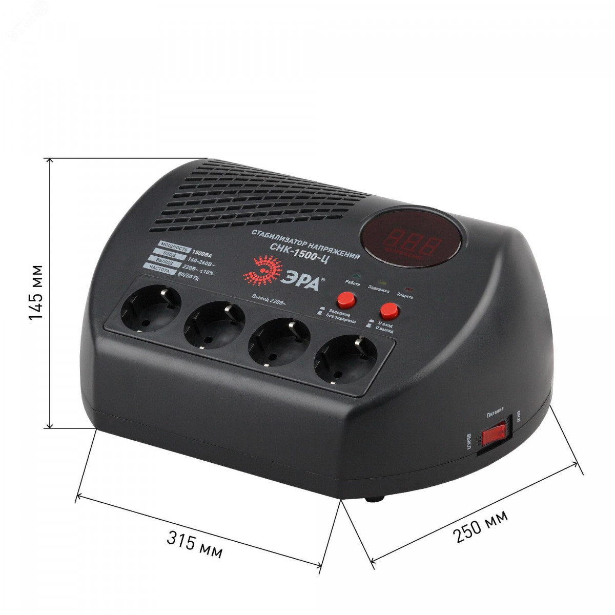 Стабилизатор напряжения компактный СНК-1500-Ц цифровой дисплей 160-260В/220В, 1500ВА