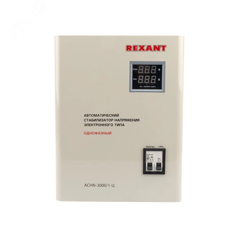 Однофазный стабилизатор переменного напряжения релейного типа марки REXANT предназначен для защиты различных бытовых и промышленных электроприборов от перепадов напряжения в сети и токов короткого замыкания. При отклонении входного напряжения от нормы, устройство стабилизирует его, благодаря чему подключенное к нему оборудование можно использовать, не выводя его из строя. При превышении максимальных значений напряжения срабатывает аварийное отключение нагрузки.