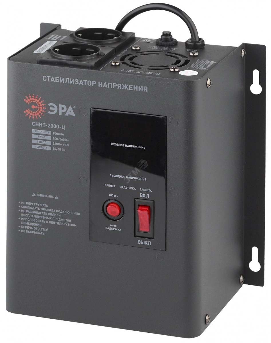 Стабилизатор напряжения настенный ЭРА СННТ-2000-Ц цифровой дисплей 140-260В/220/В, 2000ВА (Б0020168)