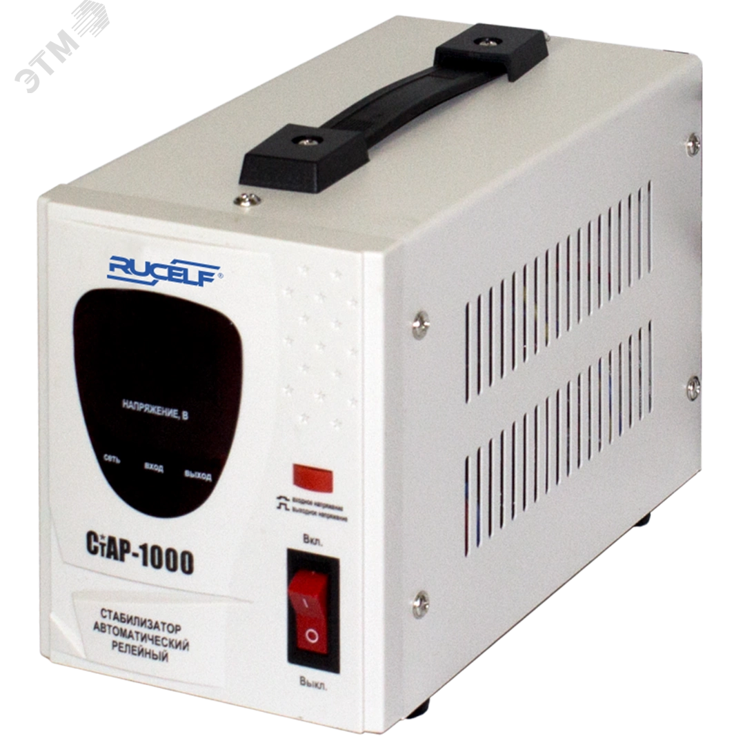 Стабилизатор напряжения RUCELF СтАР-1000VA защищает радио- и телеаппаратуру от скачков напряжения в электросети. Небольшой вес и габариты позволяют перемещать прибор в удобное для работы место. Работает с напряжением 220В с точностью до +/-6%. Прочный корпус защищает все внутренние элементы от механических повреждений. Низкий уровень шума не будет резать слух.