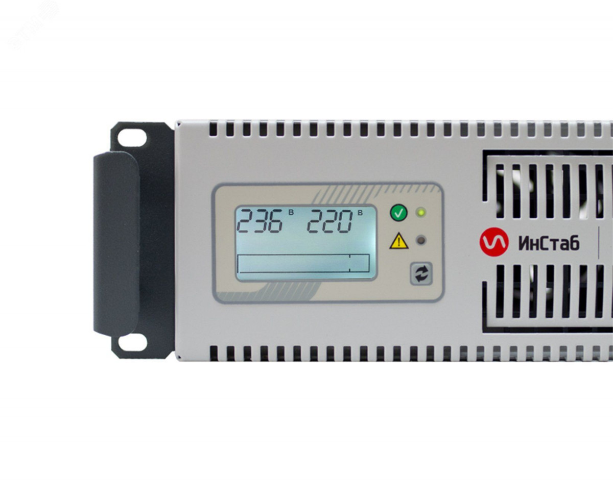 Инверторный стабилизатор напряжения IS2000RT мощностью 2000 ВА/1500 Вт выполняет эффективную защиту электроприборов бытового и коммерческого применения от отклонений сетевого напряжения. IS2000RT – стабилизатор нового поколения с расширенными функциональными возможностями. Основной принцип работы устройства – двойное преобразование электрического тока, которое позволяет мгновенно реагировать на малейшие сетевые отклонения, обеспечивать коррекцию входного напряжения с максимальной точностью и в широком диапазоне, поддерживать на выходе напряжение с формой идеального синуса, снабжать нагрузку бесперебойным питанием при кратковременном пропадании напряжения. Для эффективного охлаждения IS2000RT имеет прочный перфорированный корпус и малошумный кулер с автоматической регулировкой скорости работы.