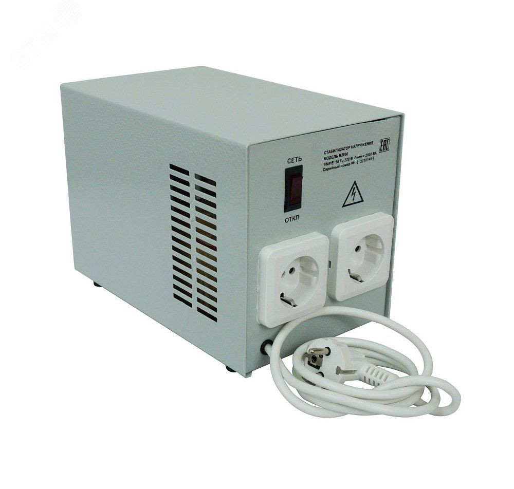 "Стабилизатор напряжения ""Штиль"" R 2000 защищает бытовую, офисную и промышленную технику, суммарная электрическая мощность которой не превышает 2000 ВА (холодильники, телевизоры, СВЧ-печи, насосы, компьютеры, факсимильные аппараты, офисные АТС и т.д.). При подключении электродвигателей (имеются в составе холодильников, стиральных машин, насосов, компрессоров, моек высокого давления, электроинструмента) с прямым пуском стабилизатор напряжения должен иметь минимум полуторакратный, а лучше трехкратный, запас мощности относительно мощности электродвигателя."
