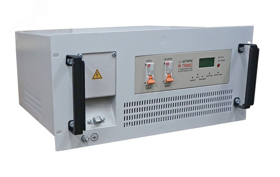 "Стабилизатор напряжения ""Штиль"" R 7500C защищает телекоммуникационное оборудование, компьютерную и офисную технику, промышленные контроллеры и АСУ ТП, суммарная электрическая мощность которых не превышает 7,5 кВА. При подключении асинхронных электродвигателей стабилизатор напряжения должен иметь как минимум трехкратный запас мощности относительно мощности электродвигателя."