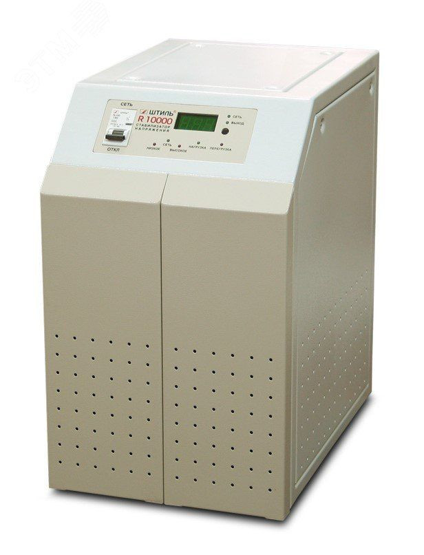 "Стабилизатор напряжения ""Штиль"" R 12000 защищает бытовую, офисную и промышленную технику, суммарная электрическая мощность которой не превышает 12 кВА (насосы, стиральные машины, холодильники, компьютеры, принтеры, факсимильные и копировальные аппараты, автоматические телефонные станции, кондиционеры и т.д.). При подключении электродвигателей (имеются в составе холодильников, стиральных машин, насосов, компрессоров, моек высокого давления, электроинструмента) с прямым пуском стабилизатор напряжения должен иметь минимум полуторакратный, а лучше трехкратный, запас мощности относительно мощности электродвигателя."