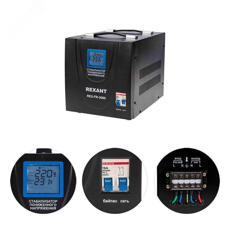 Стабилизатор пониженного напряжения релейный напольный REX-FR-3000 мощностью 3000 ВА