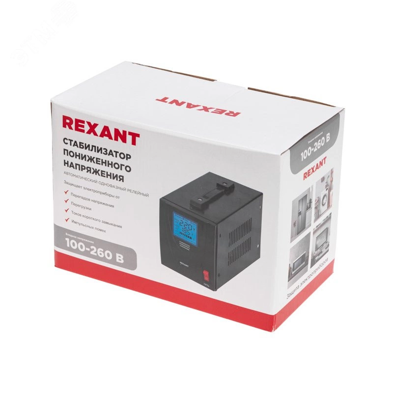 Однофазный стабилизатор переменного напряжения релейного типа марки используется для предотвращения поломки бытовых и промышленных электроприборов вследствие перепадов напряжения в сети. Устройство стабилизирует входное напряжение в случае отклонения от нормы, что предотвращает внезапную поломку оборудования. Превышение предельно возможного значения напряжения приводит к аварийному отключению нагрузки. Имеет широкий рабочий диапазон входного напряжения и высокую скорость реакции на перепады. Оснащен варистором, который сглаживает импульсные помехи. Предусмотрена высокая точность стабилизации напряжения.