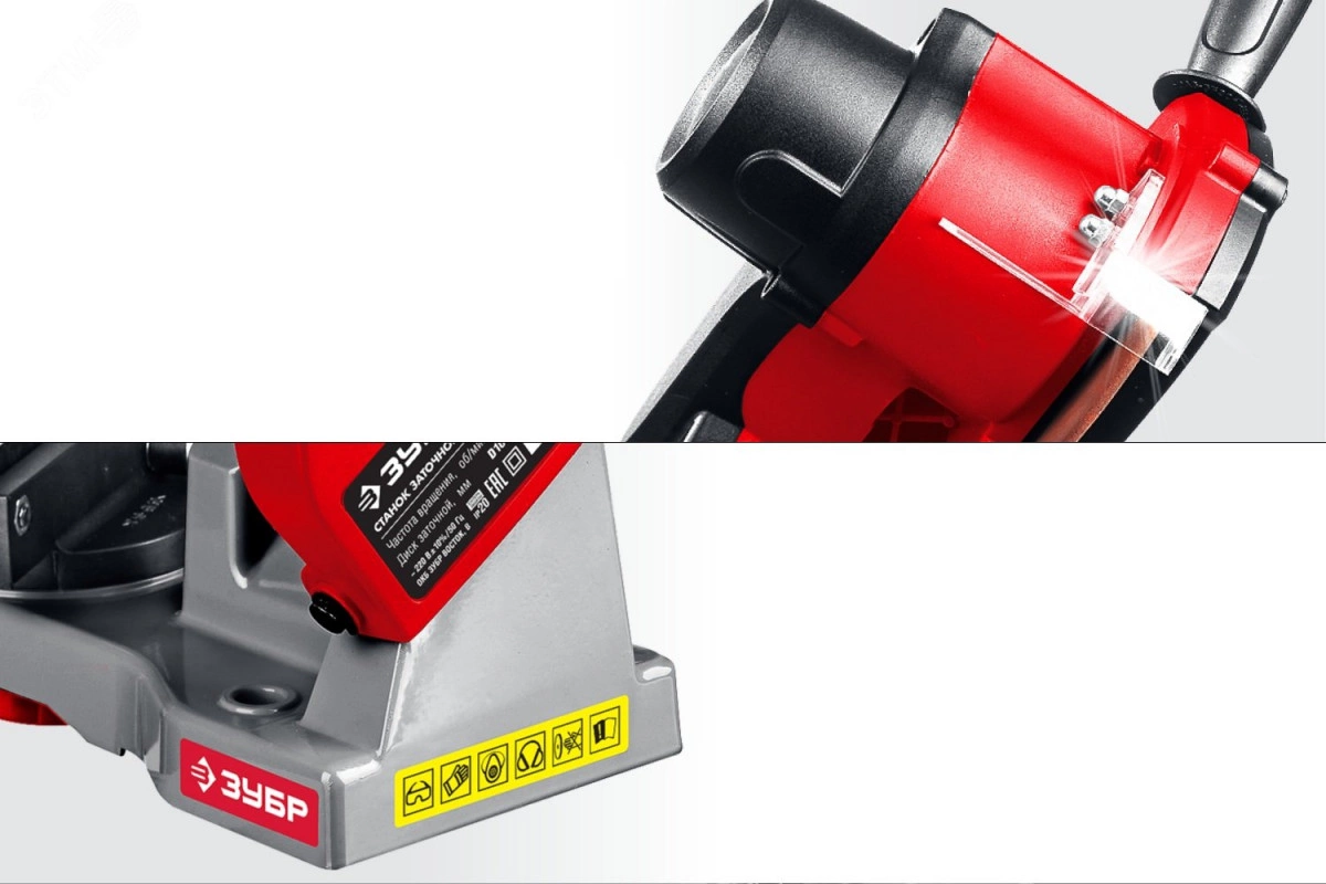 Удобное и надежное изделие. 2 диска разной толщины для различных типов пильных цепей. Компактный и мощный коллекторный двигатель. LED подсветка. Прозрачные экраны для защиты оператора от продуктов обработки. Быстрозажимная система фиксации цепи. Регулировка глубины точения. Возможность крепления к опорной поверхности. Эргономичная рукоятка.